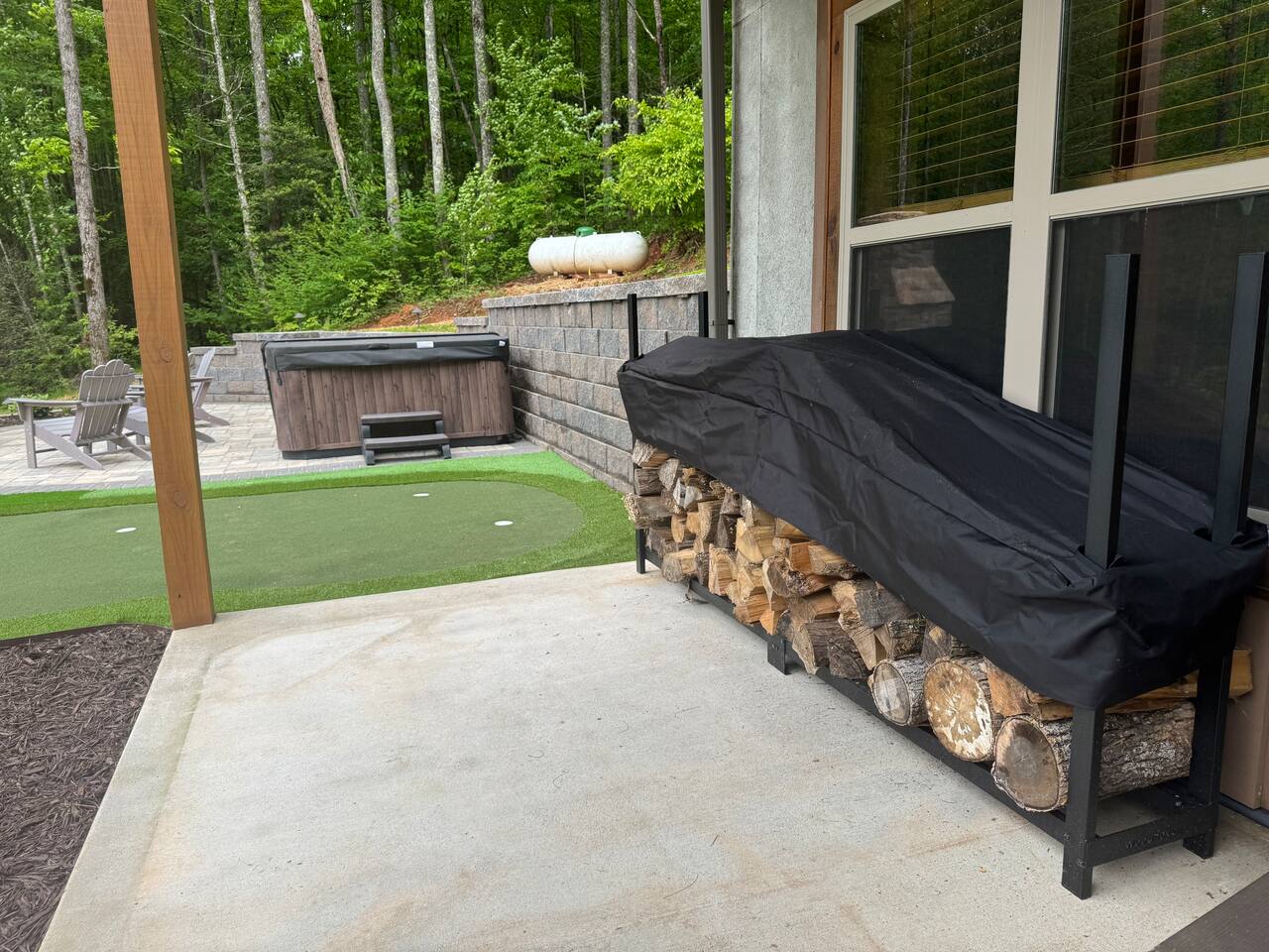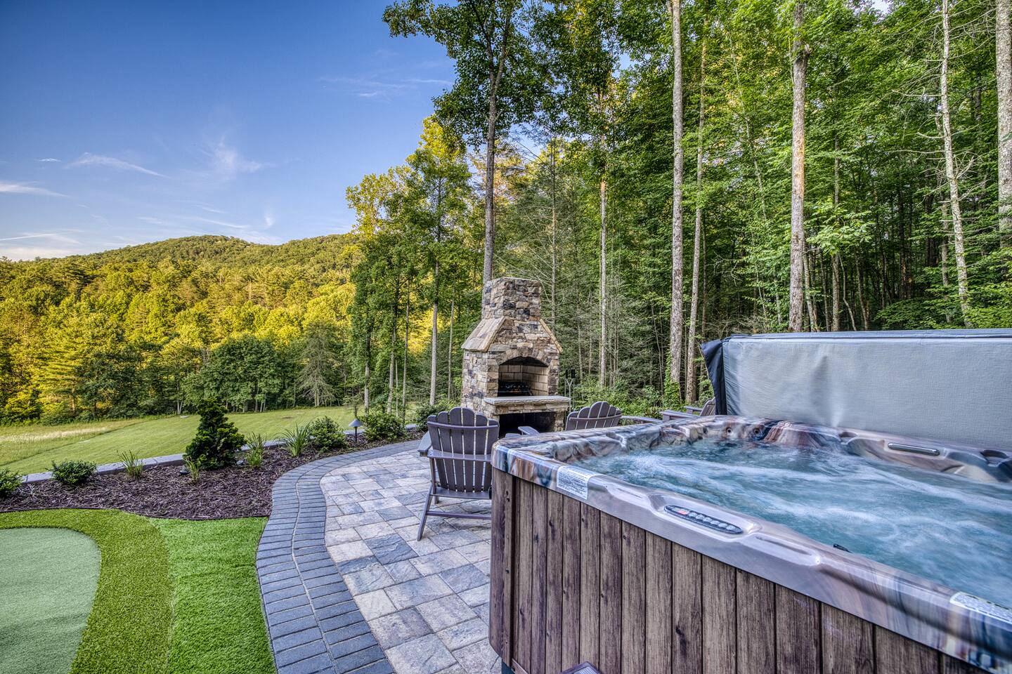 NEW! Buck Creek Den, set on 3 peaceful acres with stunning close-range mountain views, high-end amenities, and room for everyone. Step out onto a BRAND-NEW terrace with putting green, hot tub, & fireplace — all overlooking mountain views & your own stretch of creek. The expansive yard offers open space for kids & pets to play. While it feels like a secluded retreat, it's only minutes from local attractions. This is more than a stay — it’s a getaway for relaxation, connection, & memory making